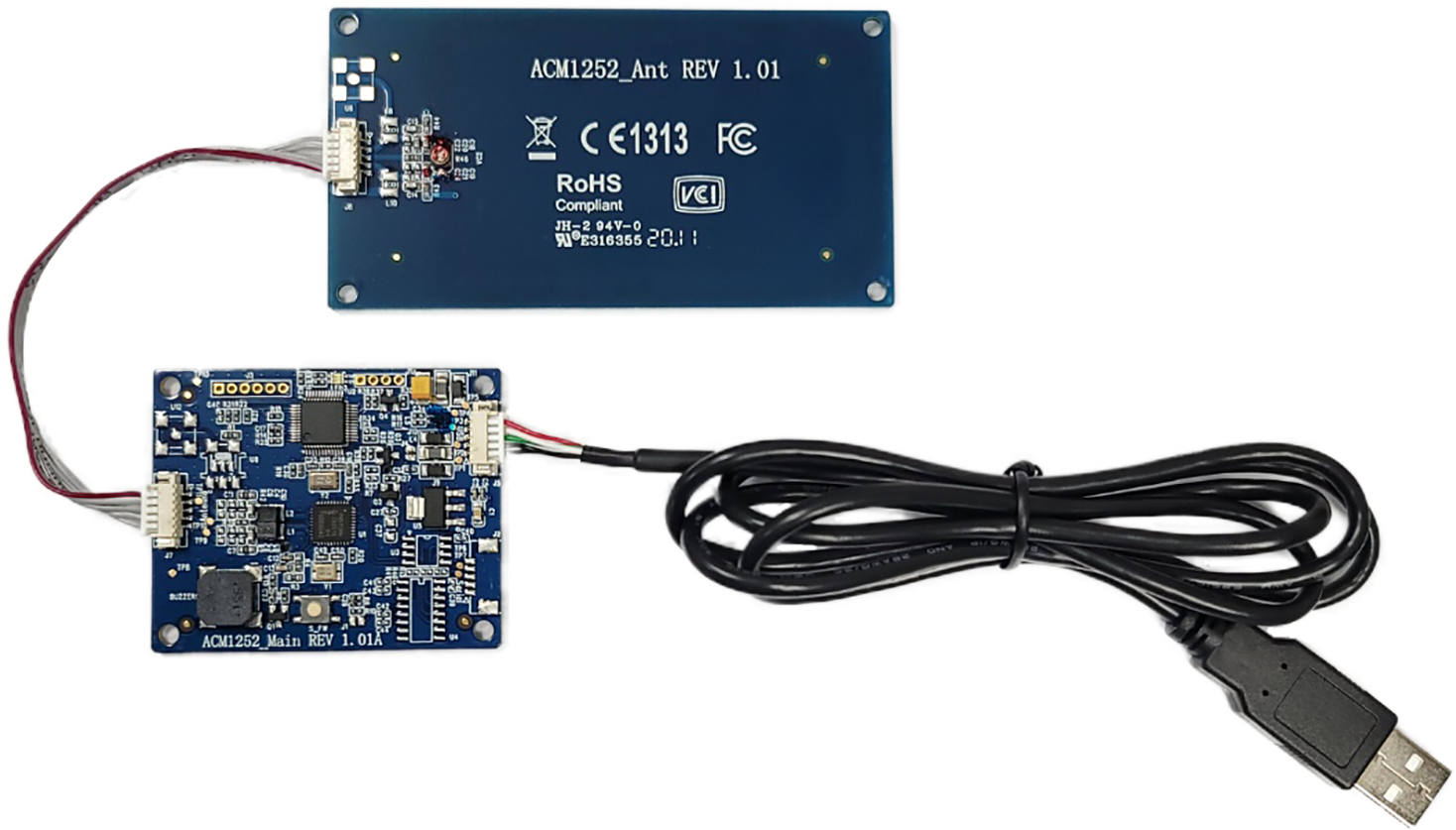 ACM1252U-Y3는 케이스가 없는 모듈 형태의 제품으로 NFC 지원 리더기(ACR1252)와 기능 및 사양이 동일하나, 기존 ACR1252U리더기와는 다르게 안테나와 분리형 모델입니다.