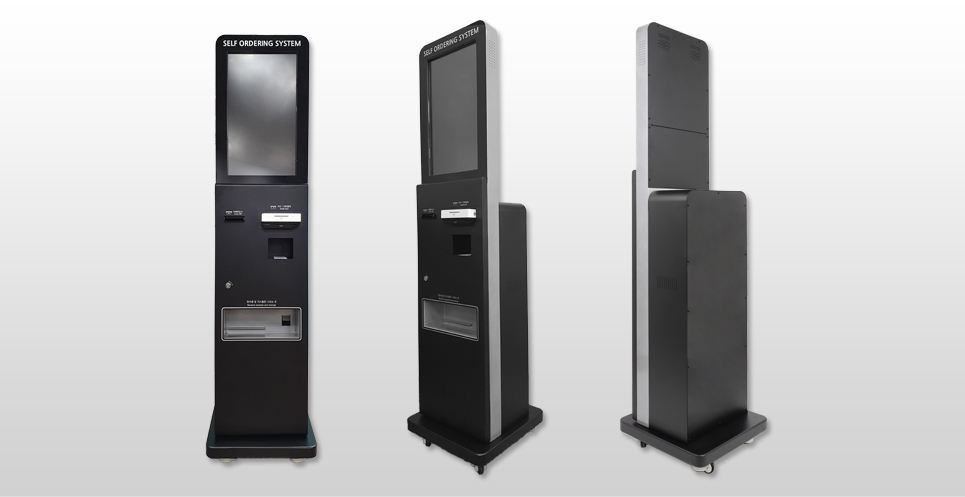 K215D는 전체 외관을 단단한 철판으로 적용한 신용카드 결제 전용으로 테이블에 올려두고 사용할 수 있는 공간 절약형 스마트 키오스크 모델 입니다.